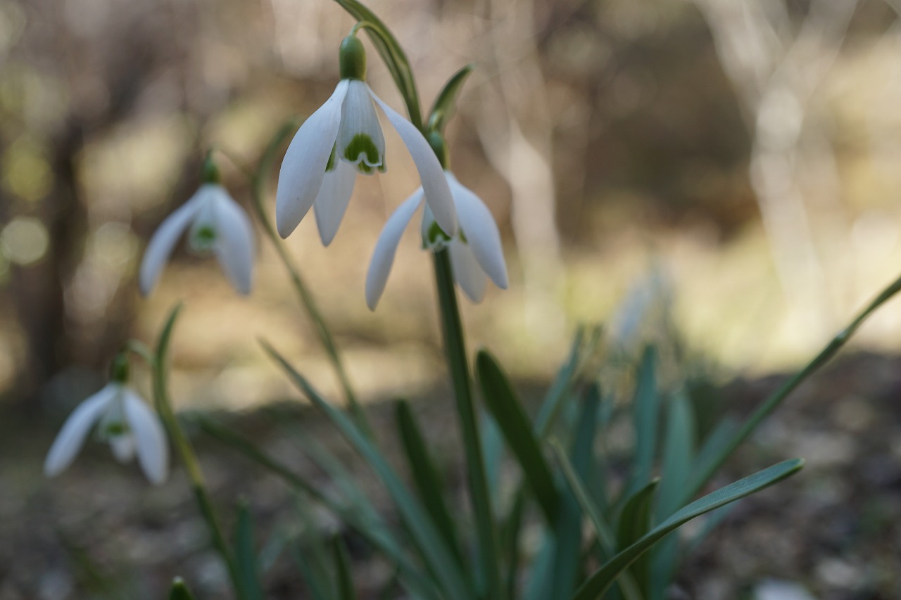 稲荷社の近くに雪の小鈴、青花菊咲一華、菊咲一華などが咲き始めました